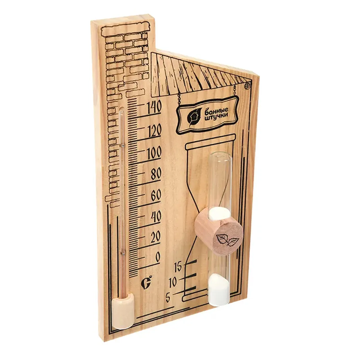 Термометр с песочными часами Банные штучки — практичный и стильный аксессуар для вашей бани или сауны. Он помогает контролировать температуру в парной и отслеживать время процедур с помощью встроенных песочных часов. Корпус выполнен из натурального дерева, устойчивого к влаге и нагреву, что гарантирует долговечность изделия. Песочные часы рассчитаны примерно на 15 минут — идеальное время для комфортного пребывания в парной.
