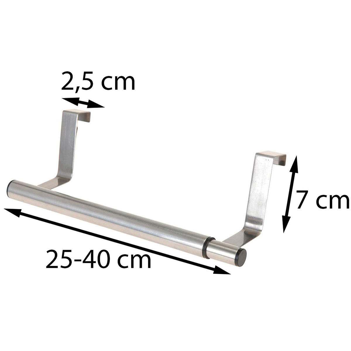 Главная особенность модели — раздвижная конструкция: длина регулируется от 25 до 40 см, что позволяет адаптировать вешалку под нужное количество вещей и ширину дверцы. Прочные крючки обеспечивают надежное удержание полотенец, одежды или аксессуаров.