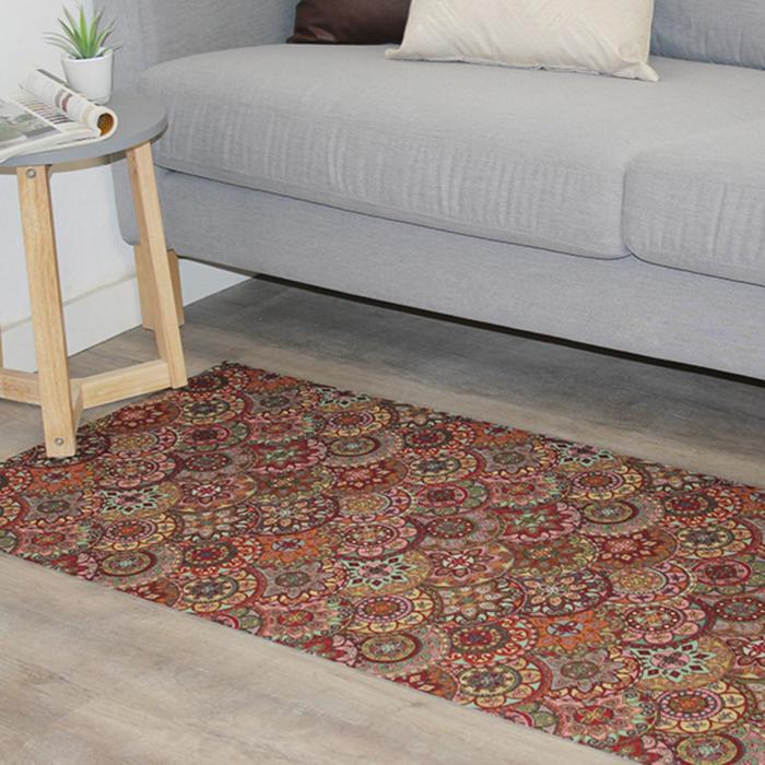 Коврик выполнен в классическом гобеленовом стиле с декоративным узором. Сочетание хлопка и полиэстера обеспечивает прочность, устойчивость к истиранию и простоту в уходе. Материал хорошо держит форму, не деформируется и сохраняет насыщенность цветов даже при активной эксплуатации.