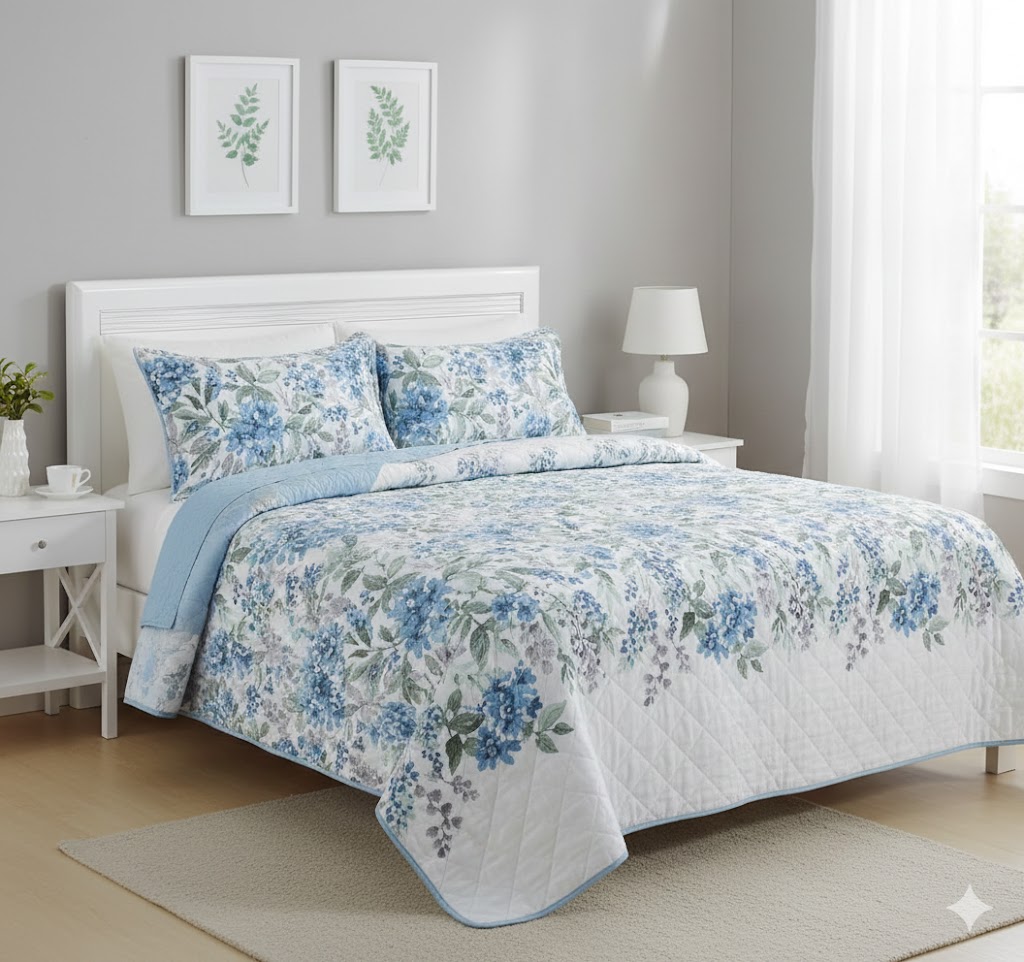 Завершенный образ: Набор включает в себя большое покрывало и две наволочки, выполненные в едином стиле, что позволяет мгновенно преобразить спальню без поиска дополнительных аксессуаров.