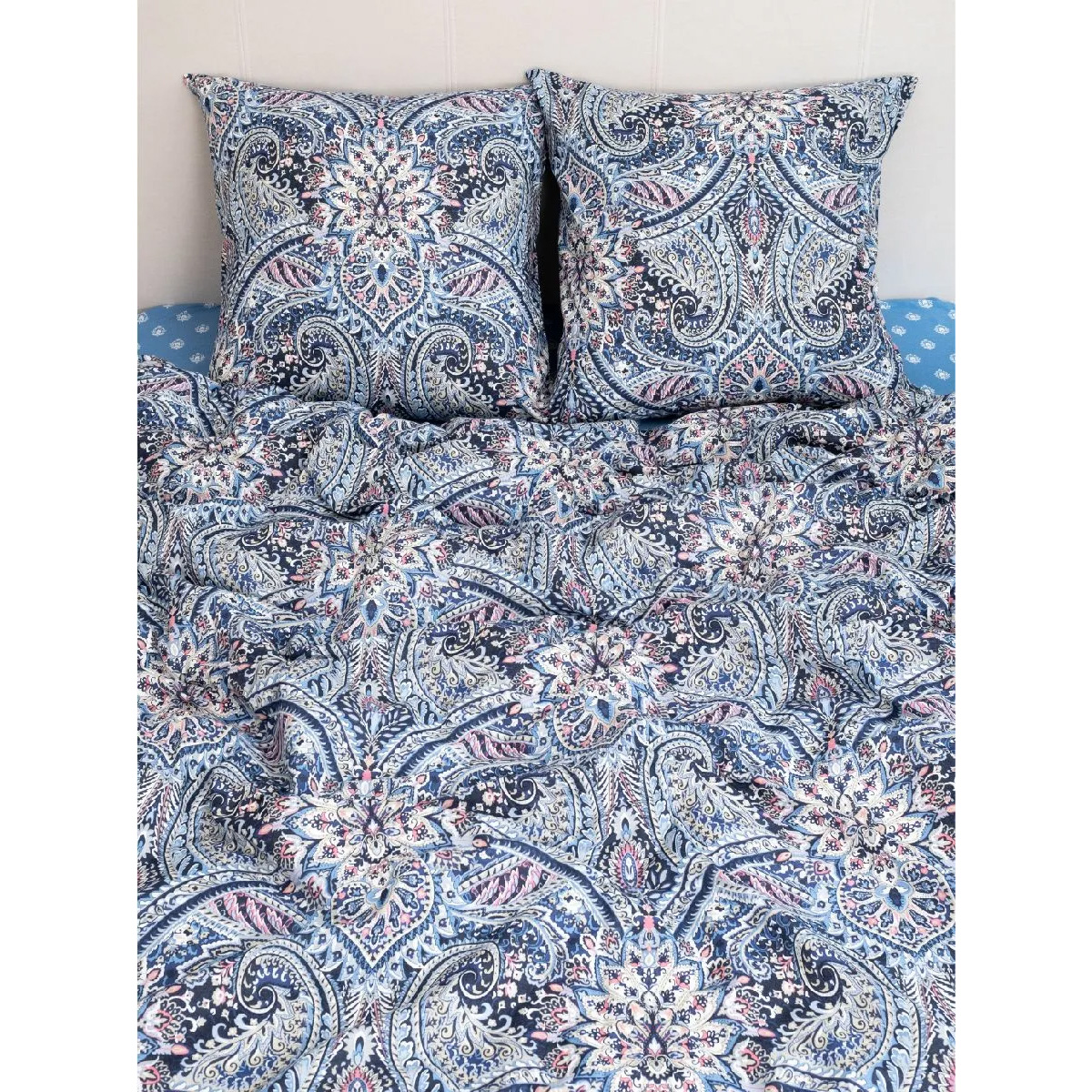 Комплект постельного белья «Василиса» — это практичное решение для дома, сочетающее в себе натуральность материалов и изящный дизайн. Сложный восточный узор «пейсли» в сине-голубых тонах добавит интерьеру спальни выразительности и создаст атмосферу уюта.