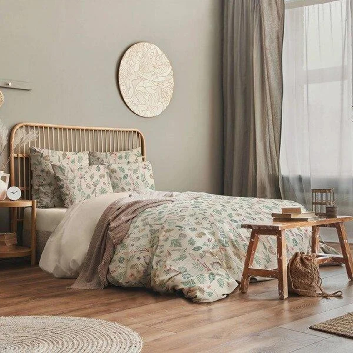 Эко-подход: При производстве используются безопасные красители, а простыня и нижняя часть пододеяльника выполнены без их применения, что подчеркивает экологичность коллекции.