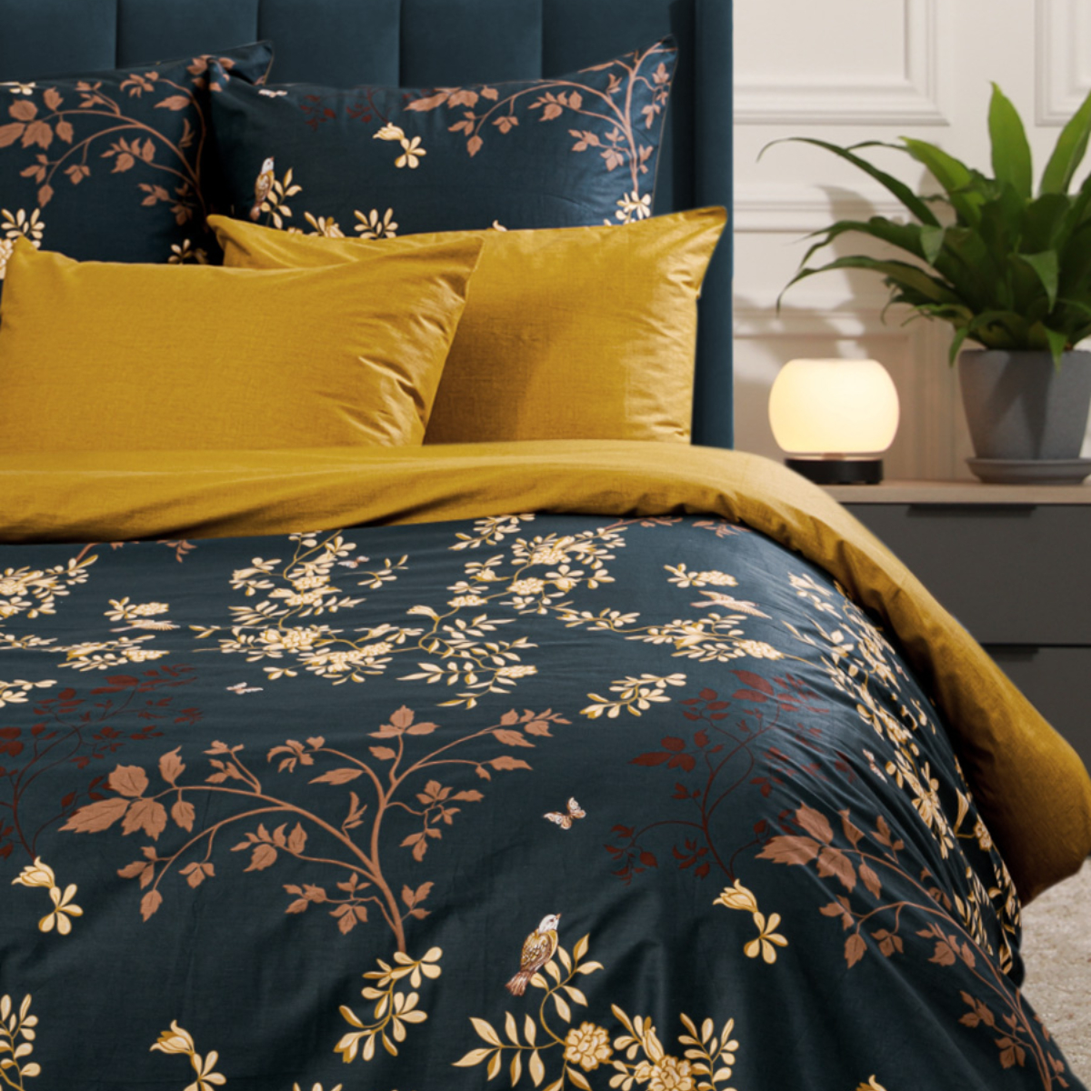 Особенностью данной коллекции является ее уникальный пошив: двусторонние пододеяльники и наволочки. Благодаря этому комплекты выглядят особенно стильно, вы можете менять образ спальни в соответствии со своим настроением, просто перевернув одеяло и наволочки. Коллекция постельного белье выполнена из натуральной ткани сатин, который отличается повышенной плотностью и прочностью. Благодаря особому атласному переплетению нитей, ткань имеет благородный лоск и блеск, визуально сатин выглядит лучше, чем ткани полотняного переплетения. Постельное белье из сатина можно не гладить: после стирки высушенный комплект достаточно разровнять и разгладить руками.