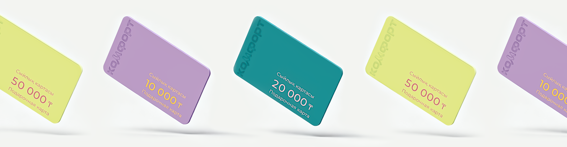 Пластиковый сертификат можно приобрести в гипермаркете "Комфорт" по адресу город Алматы, ТК "Мерей", пр. Суюнбая 2, павильон №9. Оплатить покупку Вы можете любым удобным для Вам способом: картой или наличными.- Какие номиналы сертификатов доступны к покупке?